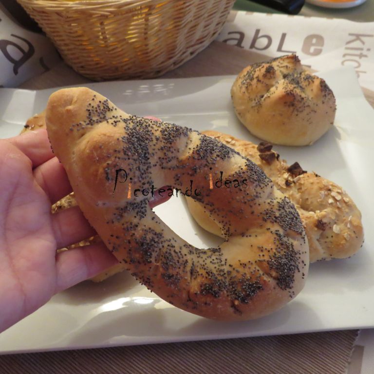 Tiene unas recetas de masas estupendas que quiero probar. En esta receta he probado una harina de candeal (o harina de panadero) que me trajo una compi de su pueblo y que he dividido para hacer en dos veces, también puse semilla se amapola.