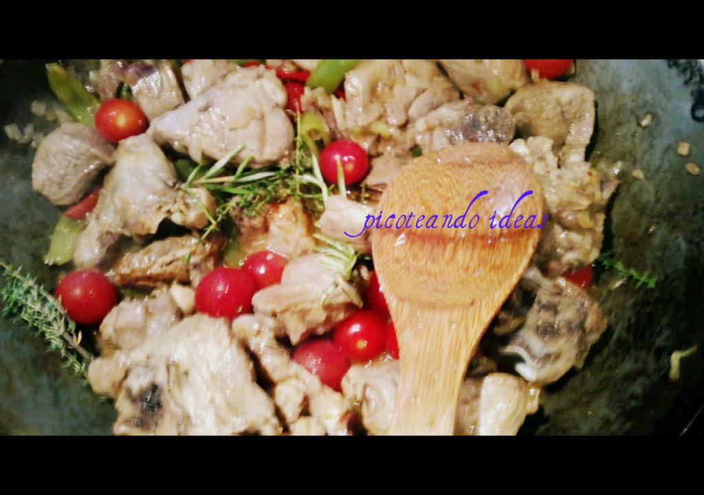 Tenemos que poner un poco de vino para que de mas sabor y lo dejamos hacer un rato.
