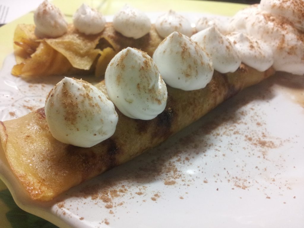 Crepes rellenos de arandanos y jaca caramelizados con canela