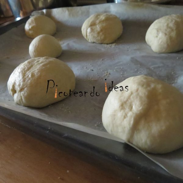 - Volcar la masa en la encimera amasamos para hacer un rollo y cortar piezas de 100 gr y los hacemos bolitas, dejamos reposar una hora en el horno apagado.