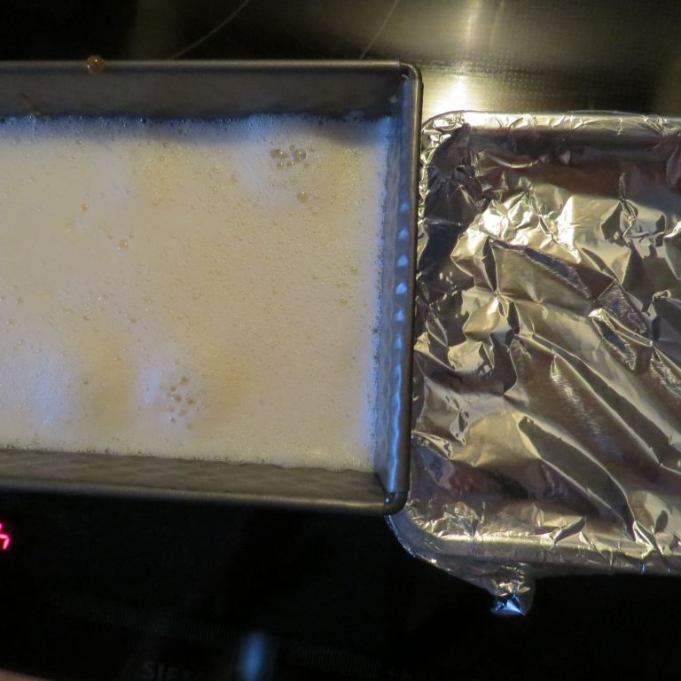 Mezclamos todos los ingredientes, ponemos un colador para quitarle la espuma que nos salga de batir, encima de cada molde, introducimos en el horno y tapamos con papel de aluminio durante 50 minutos aprox. lo destapamos y si vemos que sale todavía un poco líquido lo dejamos unos minutos mas.