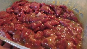 - Dejar macerar en un tuper con tapa la carne que hemos loncheado junto con la salsa, tapar y mover arriba y a bajo para que se integre bien todo.